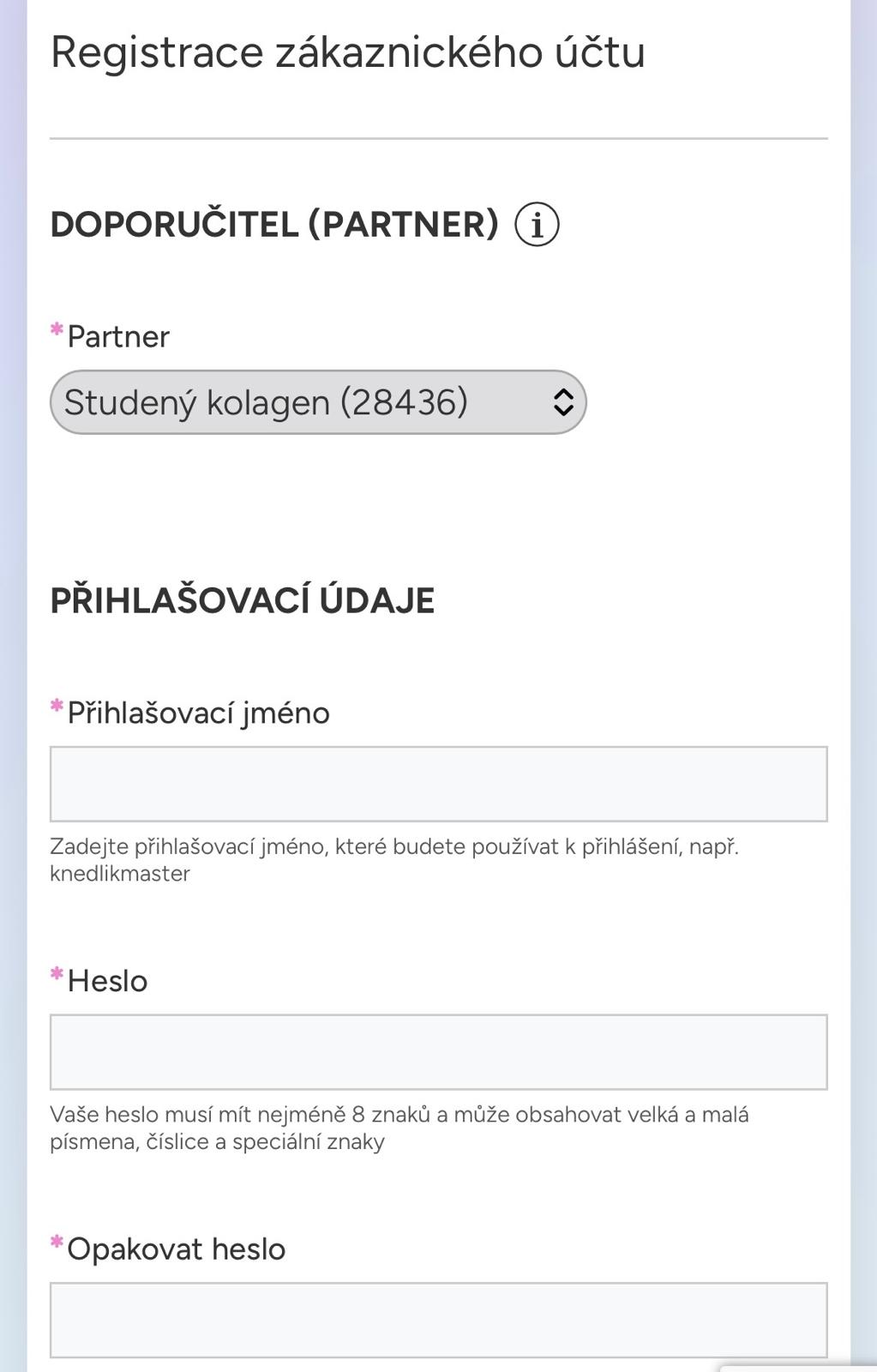 Pokud, ale chcete využít větších slev pro vlastní potřebu nebo, potřebujete profesionální účet (kosmetičky, maséři, lékaři, estetické centra a další) nebo chcete produkty dále doporučovat, je potřeba se přepnout na: